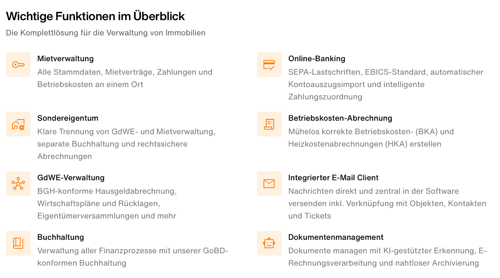 cloudbasierte Lösung, fokus auf private Vermieter, intuitive Bedienung und Automatisierungen, umfassendes Dokumentenmanagement