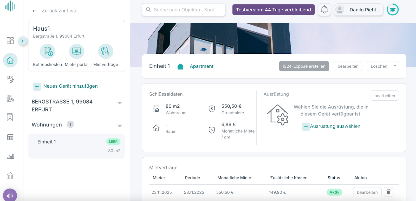 Übersichtlich und voll mit Assistenten und Vereinfachungen. Im Unterschied zu Objego fehlt es noch etwas an Erfahrung, da Objego schon länger am Markt ist. Die Ausrichtung zielt generell auf Unternehmen, die etwas größer sind – wie man am Preismodell deutlich sehen kann.