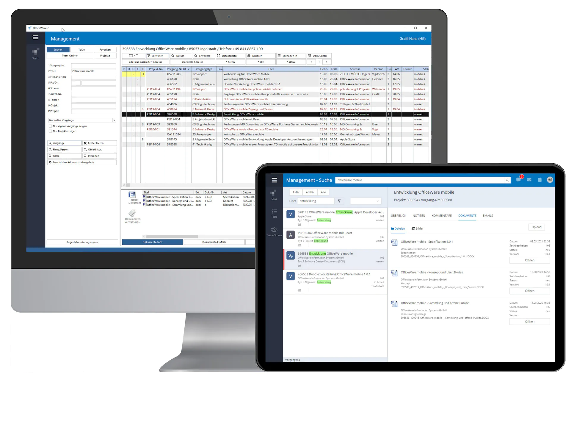 Hybride Architektur ermöglicht flexible Betriebsstrategien. Der Windows-Client basiert auf .NET Framework für lokale Installation, Web-Komponenten nutzen .NET Core für Cloud-Zugriff, als Datenbank dient Microsoft SQL Server. Diese Komponenten lassen sich je nach IT-Strategie kombinieren: vollständig On-Premise für maximale Datenkontrolle, als Private Cloud bei zertifizierten deutschen Rechenzentrumspartnern oder in Hybrid-Szenarien mit lokalen und cloudbasierten Modulen.