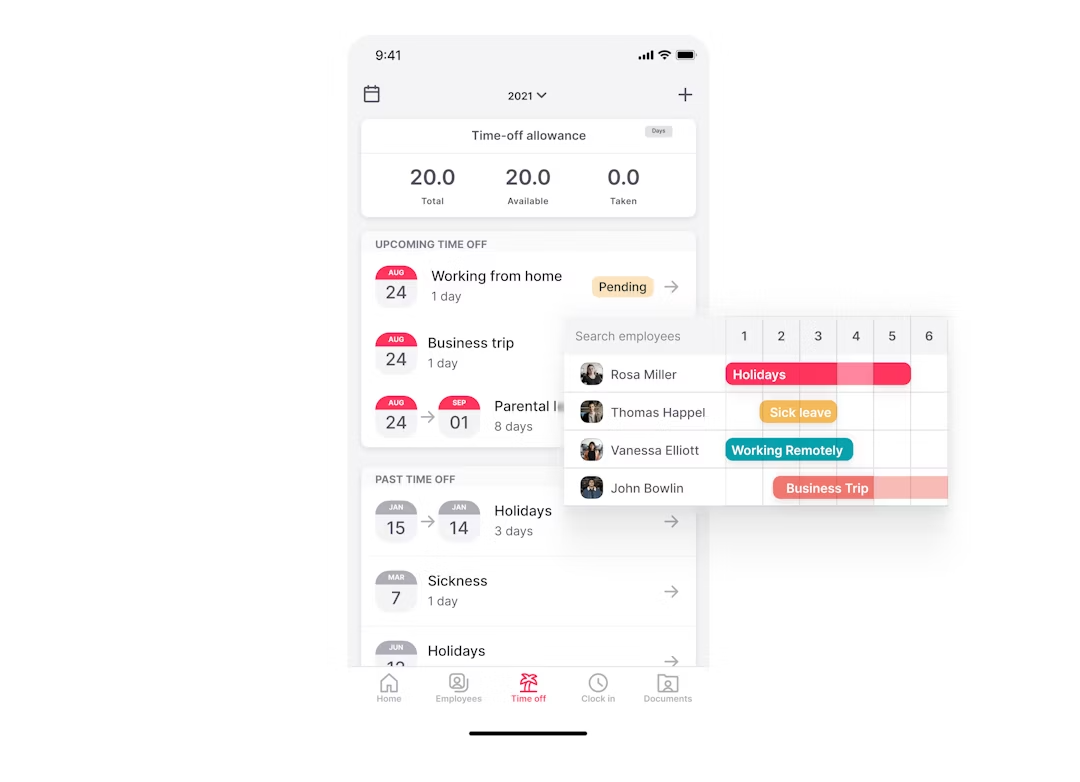 Abwesenheitsmanagement & Zeiterfassung: Die All in One-Lösung automatisiert das gesamte Urlaubs- und Abwesenheitsmanagement mit intelligenten Genehmigungs-Workflows. Mobile Zeiterfassung und flexible Schichtplanung unterstützen moderne Arbeitszeiten und verschiedene Arbeitszeitmodelle. Teams können ihre Schichten und Arbeitszeiten selbständig verwalten, während das HR Team den Überblick über alle Abwesenheiten behält.