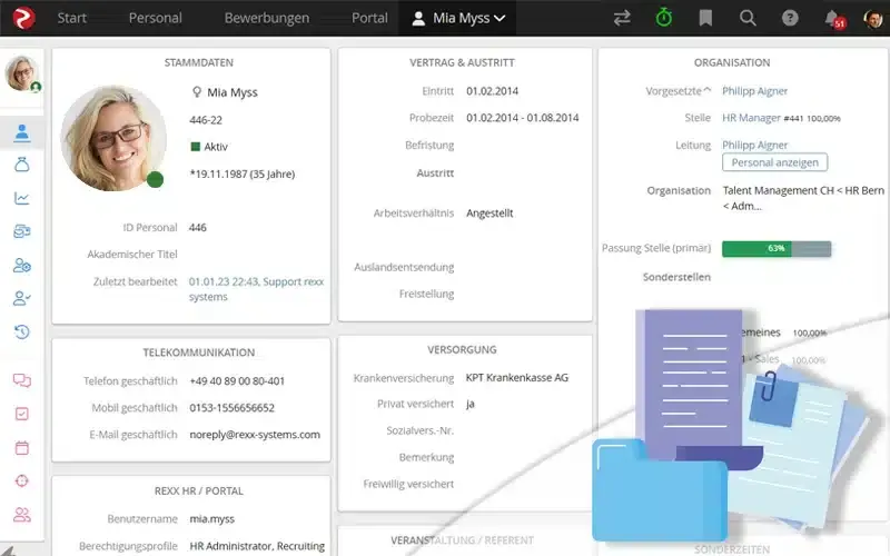 Personalverwaltung & Onboarding: Digitale Personalakte mit revisionssicherer Archivierung und strukturiertes Onboarding mit Checklisten sowie E-Signatur-Integration. Die HR Software ermöglicht eine papierlose Personalarbeit und stellt neuen Mitarbeitenden alle relevanten Informationen digital zur Verfügung. Das System unterstützt HR Abteilungen dabei, alle Personalmanagement-Prozesse zu digitalisieren und compliance-konform zu verwalten.