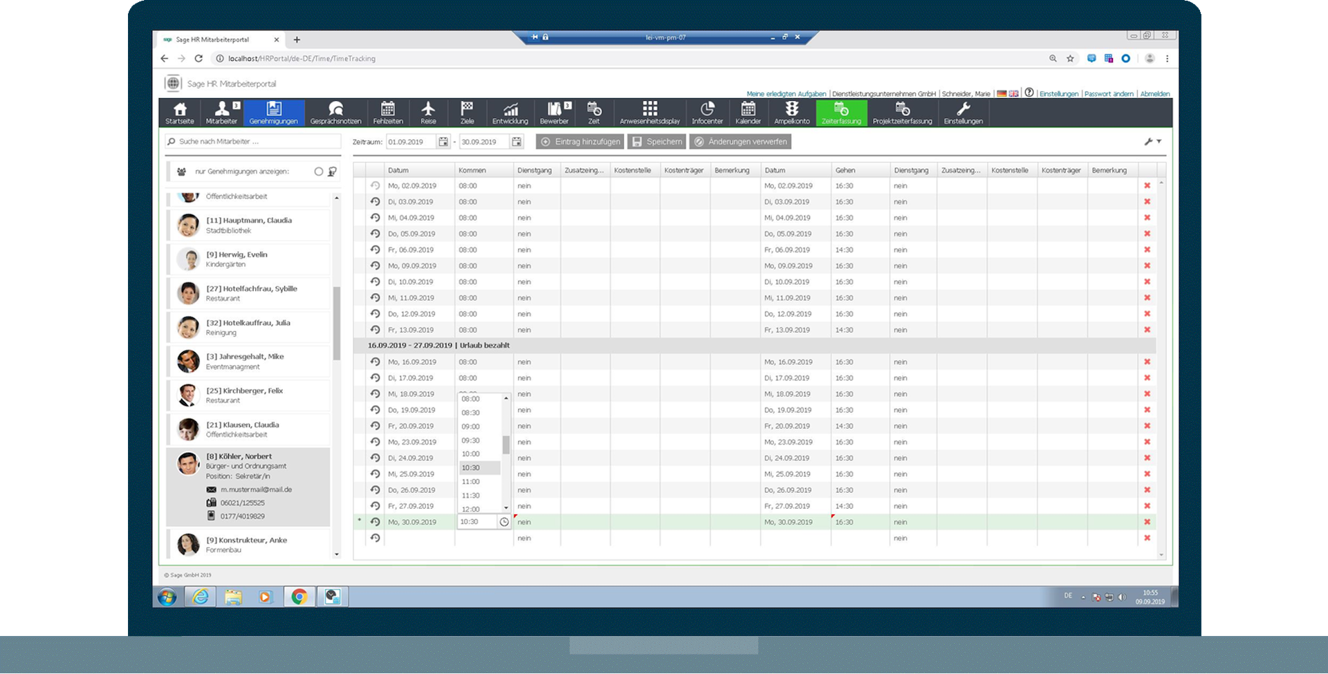Zeitwirtschaft: Automatisierte Urlaubsanträge, Fehlzeitenverfolgung und Schichtplanung mit mobilen Erfassungsmöglichkeiten und Genehmigungsworkflows. Die moderne Zeitwirtschaft-Funktionalität der Sage HR Suite unterstützt flexible Arbeitsmodelle und ermöglicht präzise Zeiterfassung für alle Mitarbeiter.