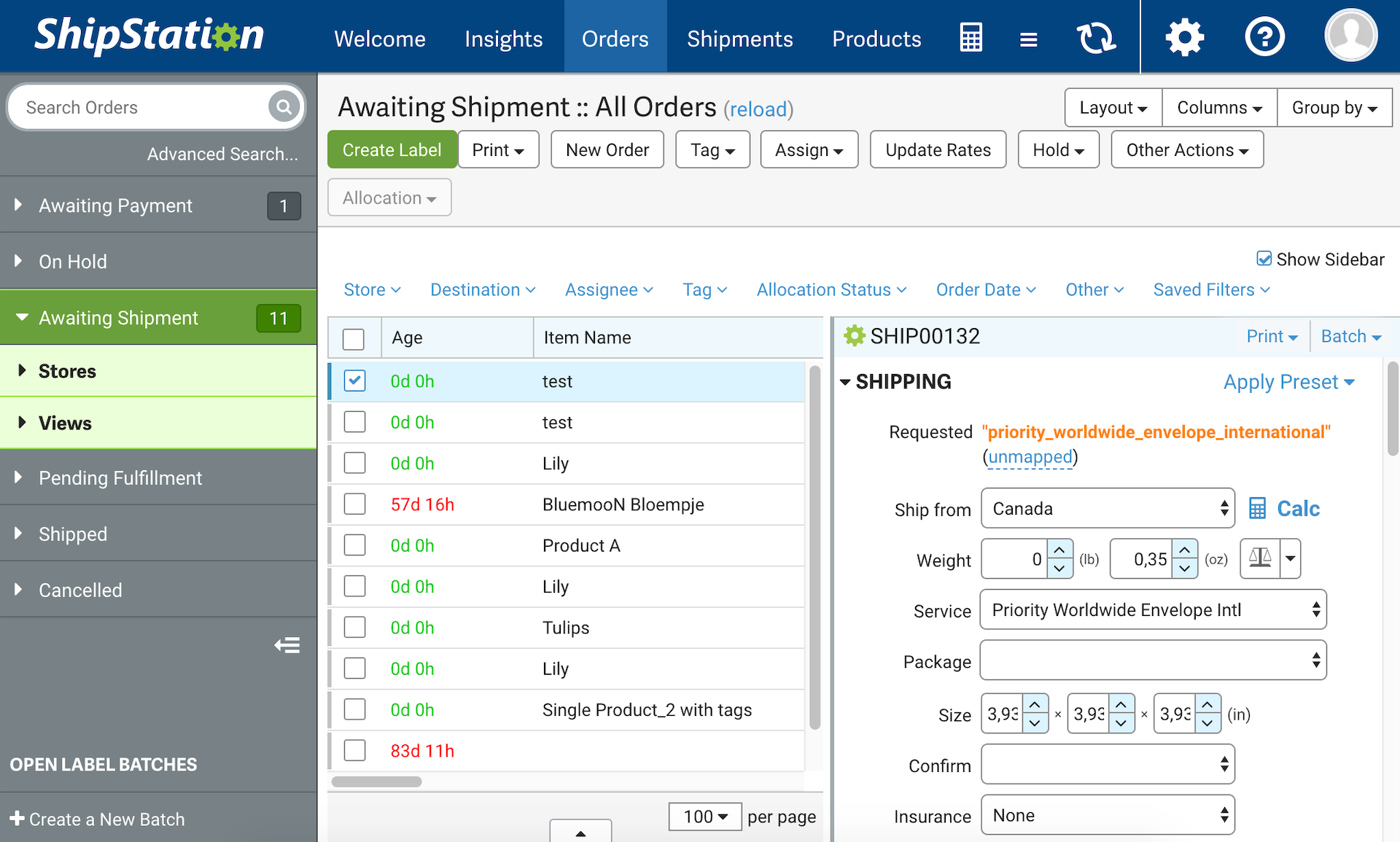 Speditionsauftragsverwaltung für verschiedene Ladungsarten