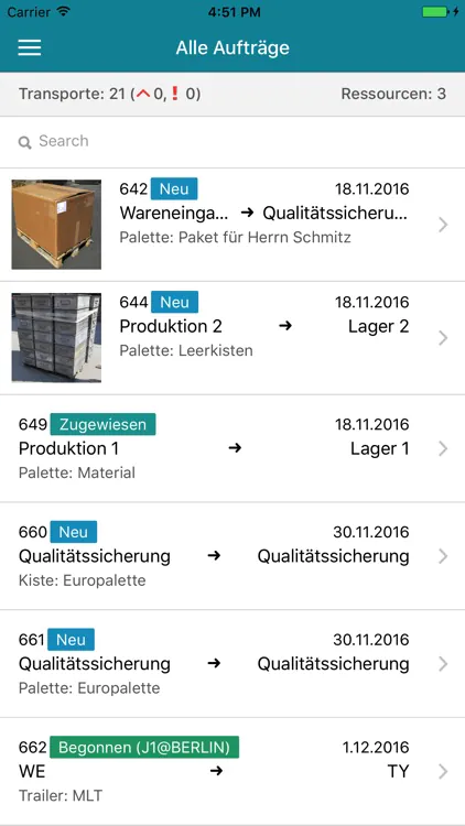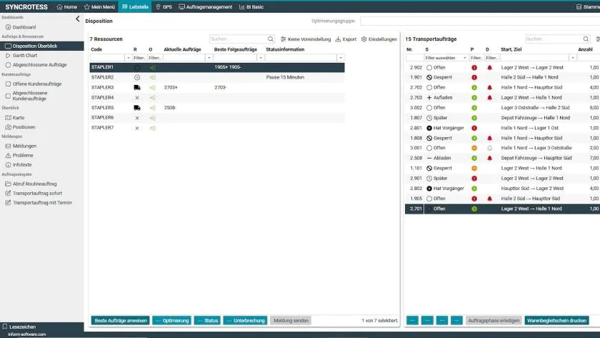 Webbasierte Behälterverwaltung, Zeitfenstermanagement, innerbetriebliche Transportplanung