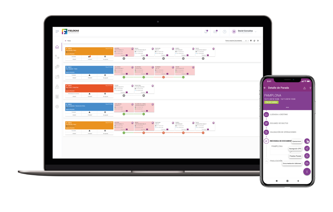 Fieldeas nutzt Echtzeit-Verkehrsdaten von HERE und Google Maps, die kontinuierlich aktualisiert werden. Die Optimierungsalgorithmen berücksichtigen aktuelle Verkehrslage, historische Verkehrsmuster für verschiedene Wochentage und Uhrzeiten sowie vorhersehbare Ereignisse. Bei gravierenden Störungen im laufenden Betrieb ermöglicht die dynamische Neuplanung eine Anpassung der Touren in Echtzeit. Die Qualität der Verkehrsdaten entspricht dem aktuellen Marktstandard führender Navigationsdienste und wird kontinuierlich durch die eigene Geo-Data-Science-Einheit ergänzt.