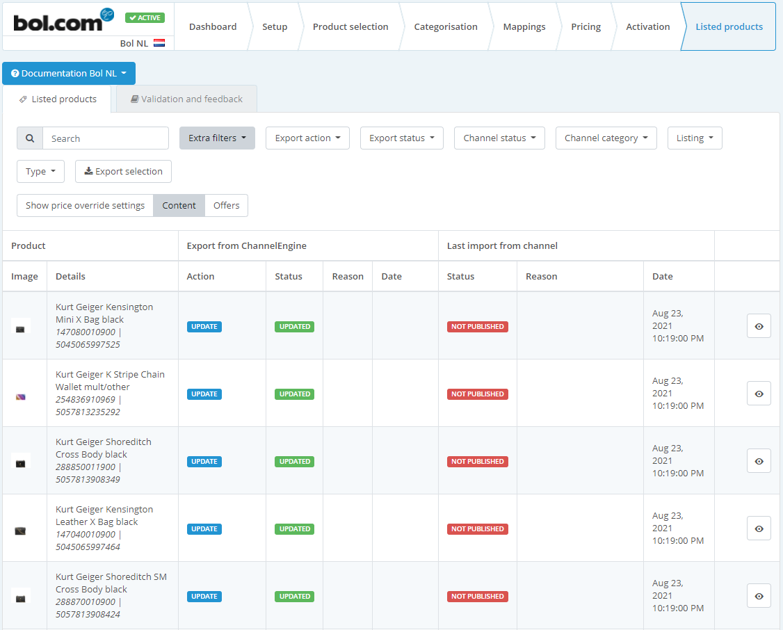 Intelligente Preissteuerung & Automatisierung: Die dynamische Repricing-Engine von ChannelEngine passt Preisen in Millisekunden an und reagiert damit schneller als konkurrierende Systeme. Regelbasierte Preisoptimierung erfolgt nach Wettbewerbspreisen, Mindestmargen oder Lagerverfügbarkeit. Bulk-Aktionen ermöglichen die Massenbearbeitung von Produktdaten, während channel-spezifische Promotion-Integration automatisch Gutscheine und Sales-Events übernimmt. Diese Funktionen erhöhen den Umsatz durch optimale Preisstrategie.