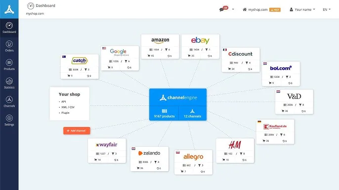ChannelEngine positioniert sich als spezialisierte Multi-Channel-Commerce-Platform für Marken und Händler, die ihre Produkte über verschiedene online Vertriebskanäle verkaufen möchten. Die Lösung fungiert als zentrale Integrations- und Steuerungsebene zwischen bestehenden E Commerce Systemen und den verschiedenen Marketplaces. Diese Channel Engine Marktplatz Software verbindet nahtlos interne Geschäftsprozesse mit externen Verkaufsplattformen für maximale Effizienz.
