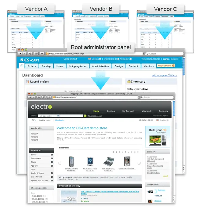 A CS-Cart multi vendor is an e-commerce platform that enables the creation and management of online marketplaces with multiple independent sellers. The cs cart multi vendor software provides integrated functionality for vendor management, order splitting, commission calculations, and separate dashboards for each seller. Unlike standard e-commerce solutions, this cart multi vendor system is specifically designed to handle complex multi-seller scenarios without requiring additional plugins.