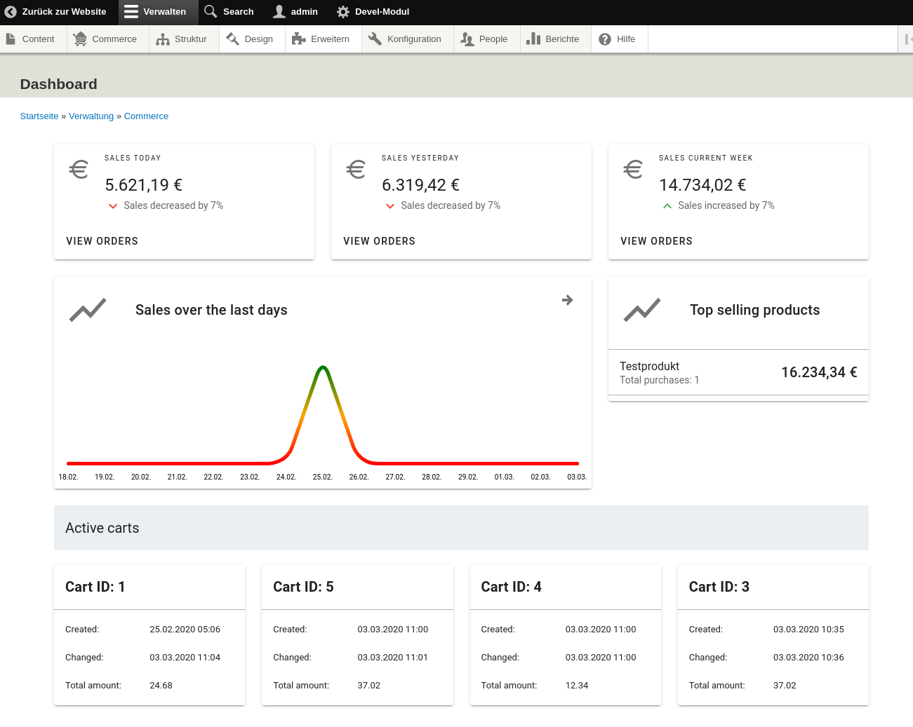 Drupal Commerce ist eine Open Source E-Commerce-Plattform, die auf dem Drupal Content Management System aufbaut. Das System vereint Commerce-Funktionen mit den mächtigen Content Management Funktionen von Drupal und ermöglicht die Erstellung komplexer Online Shops und Marktplätze. Die E-Commerce-Lösung nutzt die Basis des Drupal CMS für maximale Flexibilität.