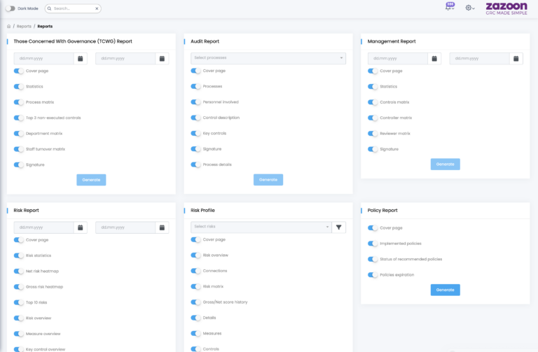Corporater deckt das Risikomanagement aller Unternehmensaspekte ab (finanziell, digital, betrieblich, technologisch, in Bezug auf Performance und Compliance sowie Drittanbieter, u.v.m.). Sie können mit dieser Risikomanagement-Software Risiken visualisieren und Risiko-Ereignisse verwalten. Die Risikoidentifizierung, -analyse, -bewertung, -behandlung, -überwachung und -berichterstattung kann dabei automatisiert werden, so dass Sie und Ihr Unternehmen sich auf die Bewertung sowie Ableitung von Maßnahmen fokussieren können.