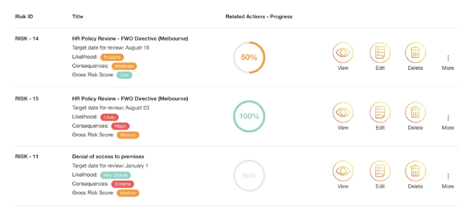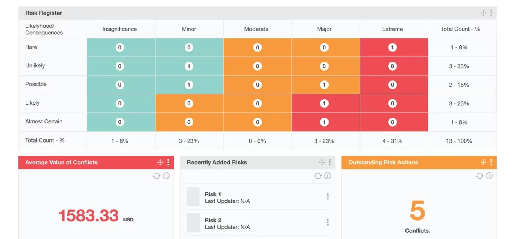 IntelligenceBank bietet solide Unterstützung für horizontale, branchenübergreifende Frameworks wie ISO 31000, COSO, ISO 27001 und SOC-Standards. Diese sind als konfigurierbare Templates verfügbar und können an unternehmensspezifische Anforderungen angepasst werden. Für stark regulierte Branchen mit spezifischen nationalen oder regionalen Vorschriften sind die Out-of-the-Box-Inhalte jedoch begrenzter als bei etablierten Enterprise-GRC-Anbietern.