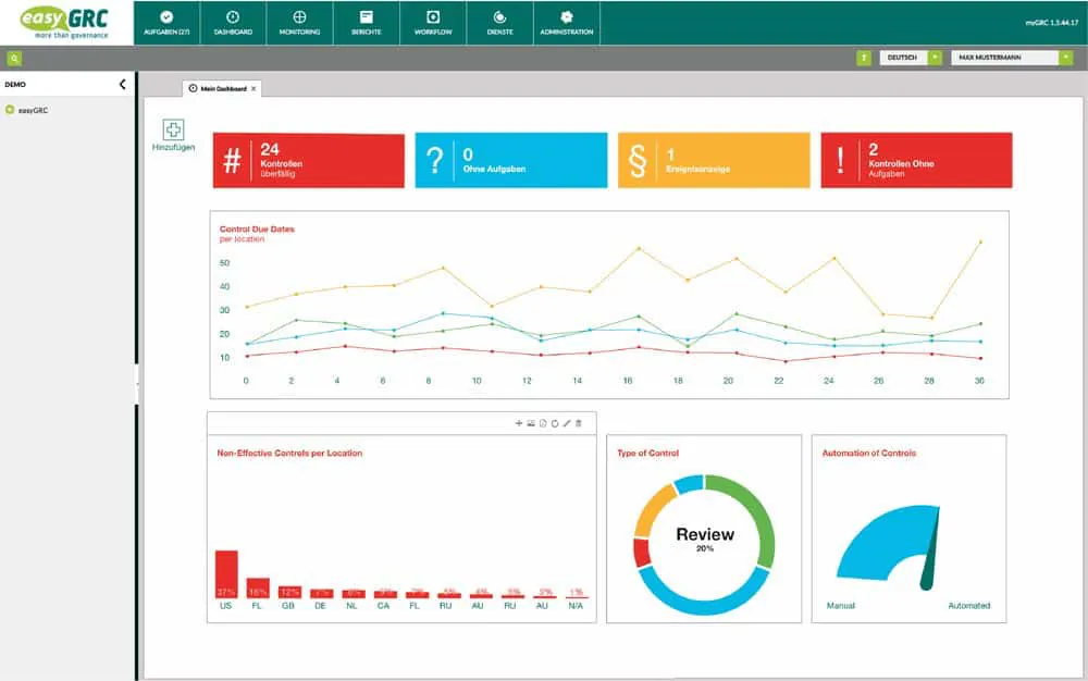 Haupteinsatzgebiete umfassen das operative Risikomanagement, Compliance-Monitoring und die interne Revision in mittelständischen Unternehmen mit 50 bis 2.000 Mitarbeitern. Die Software eignet sich besonders für Organisationen in regulierten Branchen wie Energie, Fertigung und Finanzdienstleistung, die eine schlanke Alternative zu SAP GRC oder anderen Enterprise-Lösungen suchen, ohne auf professionelle Funktionalität zu verzichten.