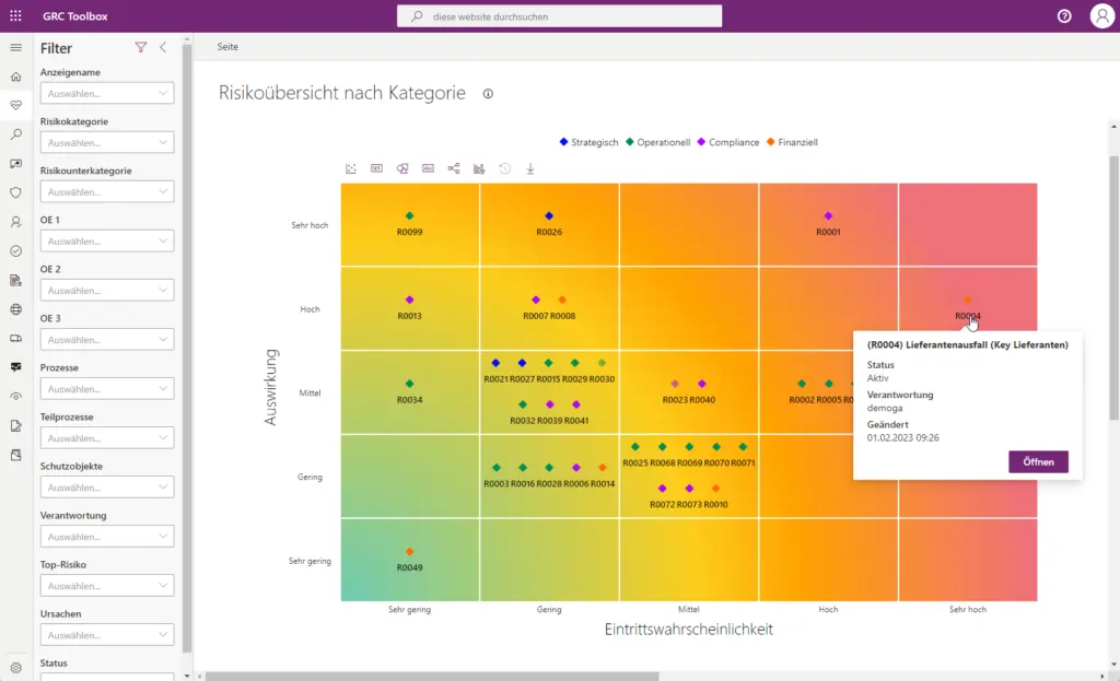 Der ROI durch Automatisierung zeigt sich in bis zu 30% Reduktion manueller Reporting-Aufwände bei strukturierten Prozessen. Typische Kunden erreichen eine Amortisation der Investition innerhalb von 18-24 Monaten, insbesondere durch die Reduktion von Excel-basierten Workarounds und die Automatisierung wiederkehrender Compliance-Berichte. Das System deckt historische Berichte ab und bietet umfassende Analysemöglichkeiten für das Risk Management.
