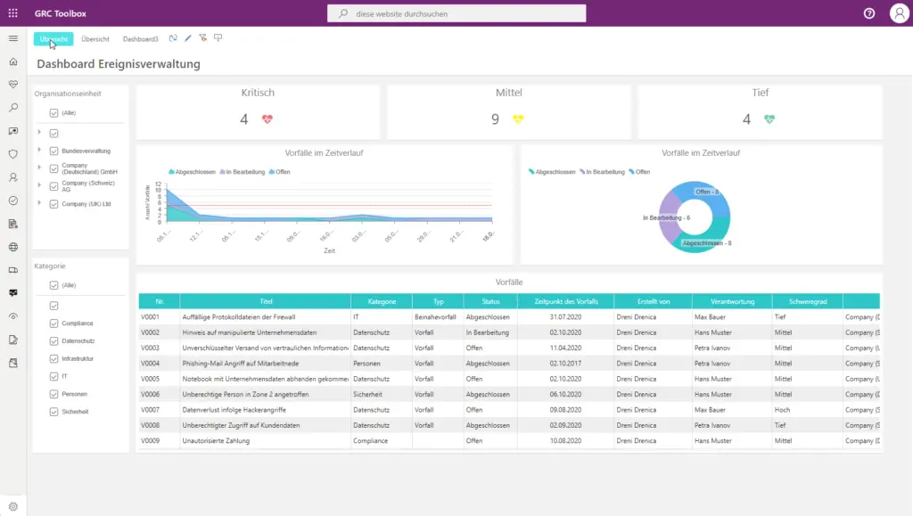 Die Mandantentrennung erstreckt sich über alle GRC-Module und gewährleistet, dass Benutzer nur auf die für sie relevanten Daten zugreifen können. Administratoren können flexibel Verantwortlichkeiten vergeben und Cross-Entity-Auswertungen für das Group Risk Management konfigurieren.