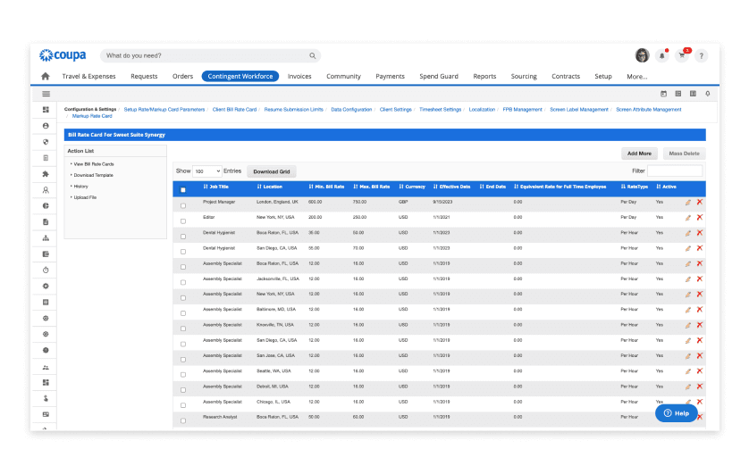 Coupa Contingent Workforce ist ein Vendor Management System von Coupa Software Inc., das als integraler Bestandteil der Business Spend Management-Plattform entwickelt wurde. Der Anbieter wurde 2006 gegründet und übernahm 2019 den VMS-Spezialisten DCR Workforce. Im Jahr 2023 erfolgte die Akquisition durch Thoma Bravo für rund 8 Milliarden US-Dollar. Die Lösung richtet sich an große Unternehmen und regulierte Branchen, die externe Mitarbeiter gemeinsam mit anderen Ausgabenkategorien steuern möchten.