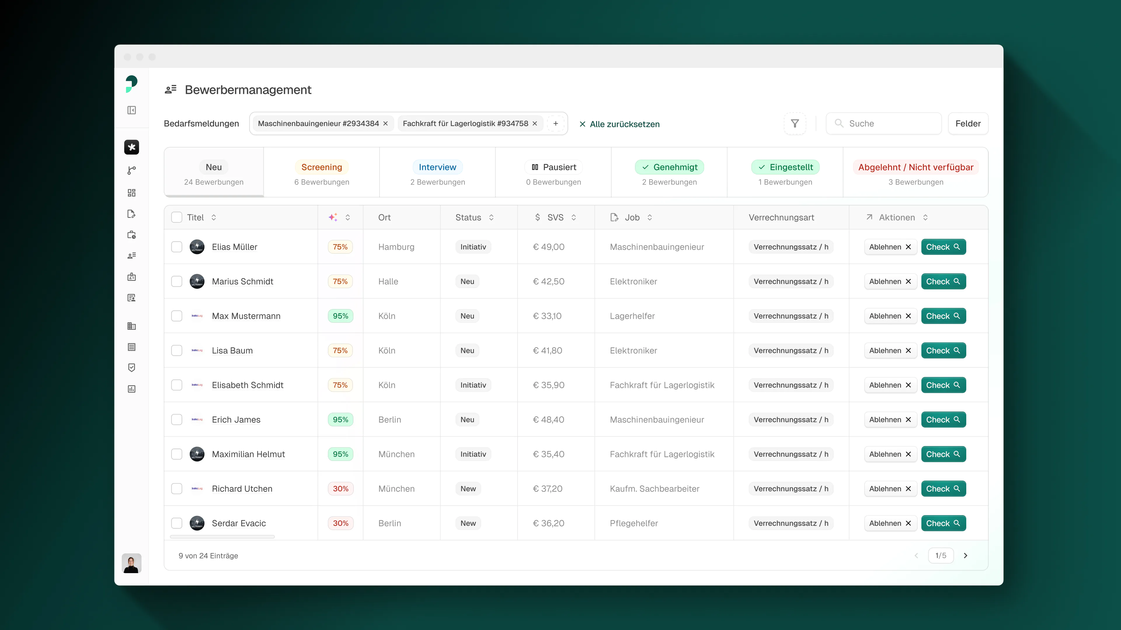 | Bewerbermanagement | Systematische Verwaltung und Prüfung von Kandidaten externer Dienstleister |