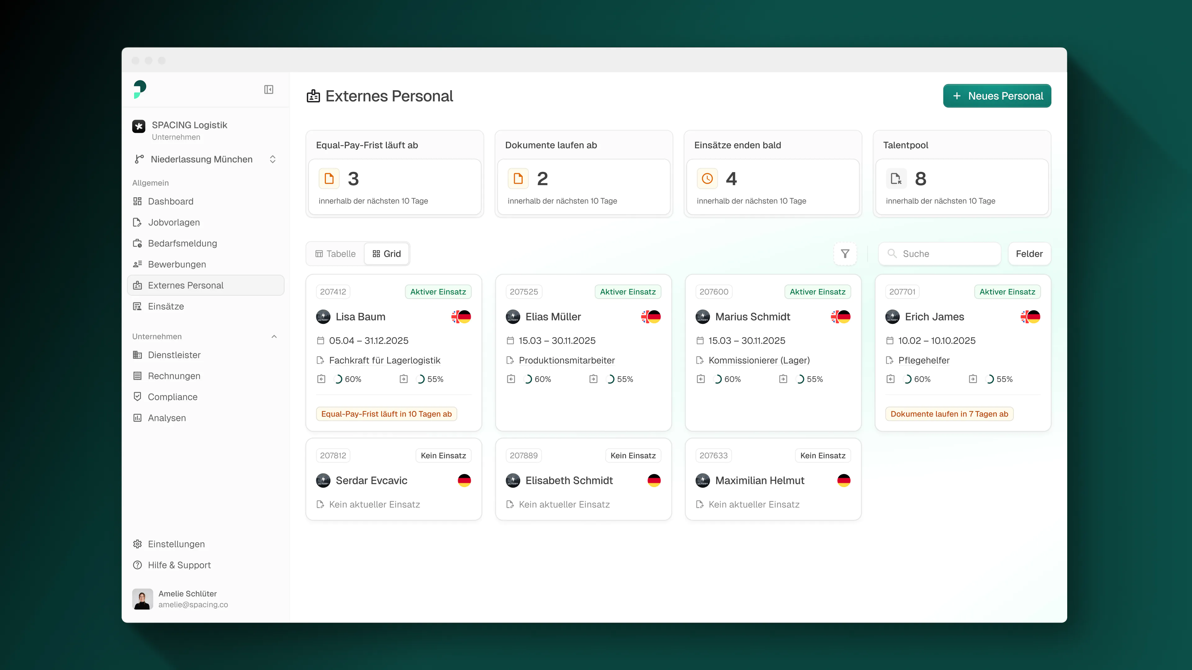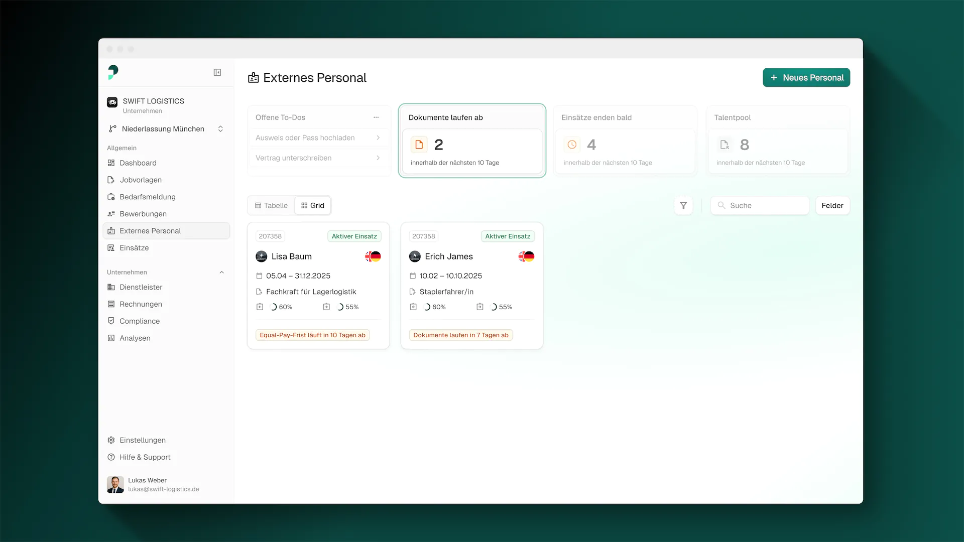 | Standortleiter | Verfügbarkeit qualifizierten Personals, Kostenkontrolle, Einhaltung lokaler Vorschriften | Intransparente Kosten, verspätete Besetzung, Qualitätsprobleme bei Dienstleistern |