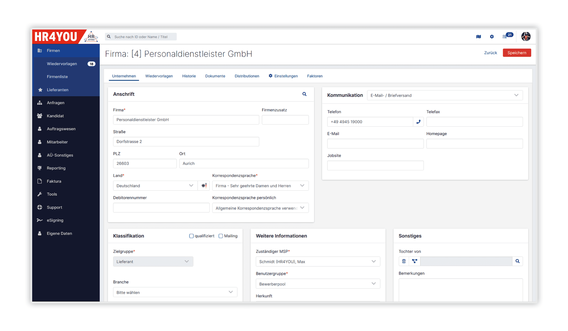 Die HR4YOU AG wurde 2001 gegründet, beschäftigt rund 200 Mitarbeiter und hat ihren Hauptsitz in Weinheim. Als etablierter deutscher Mittelständler mit über 20 Jahren Erfahrung in HR- und Procurement-Software bietet das Unternehmen finanzielle Stabilität. Im Gegensatz zu Start-ups mit unsicherer Zukunft oder zu Softwareanbietern, die nach Übernahmen durch Konzerne häufig umstrukturiert werden, repräsentiert HR4YOU ein kalkulierbares Risiko für langfristige Softwarepartnerschaften.